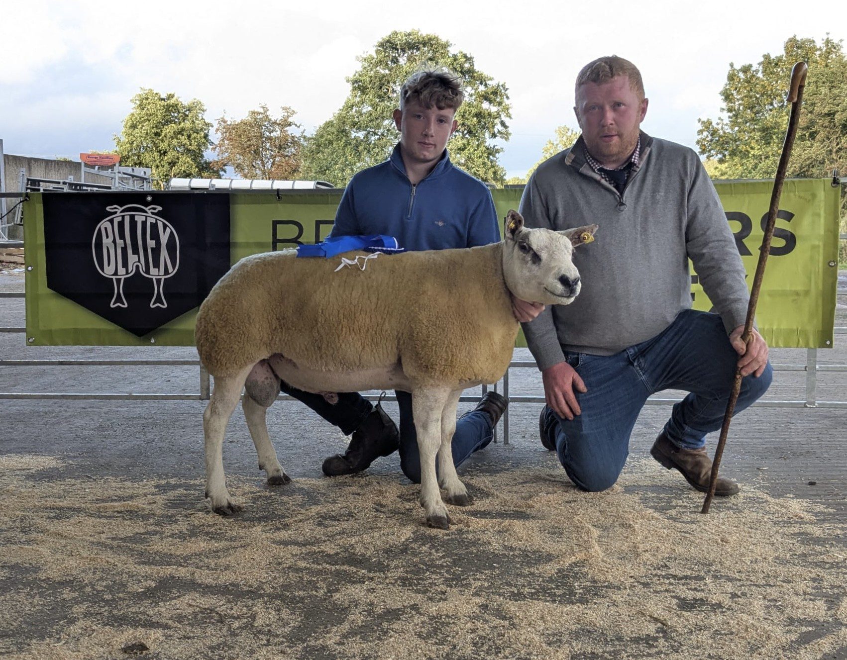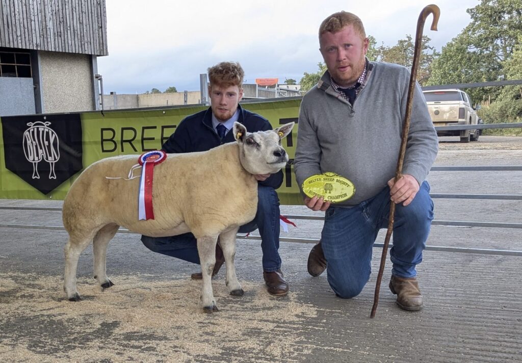 Cathaoir O’Connor, Toberhill Flock was triumphant in the Beltex championship at the Irish Beltex Sheep Breeders Club’s Ballymena Show and Sale on Monday, 15 September, with his shearling ewe, Toberhill Kayla. Lot 14 caught judge Christopher McCrea’s eye, winning her class and Female Champion before being chosen as Overall Champion. Kayla is sired by Todhall Hurricane and is out of Matt’s Halo, a private purchase for the flock from Matthew Burleigh in 2024. Having only established his Beltex flock in 2022, it was a thrilling first win for O’Connor, securing the title with the first Beltex female he had brought to a sale. The Champion also impressed in the sale ring, making a notable 1,900 guineas and going to Cahir McAuley, Larkhill Farm, Antrim.