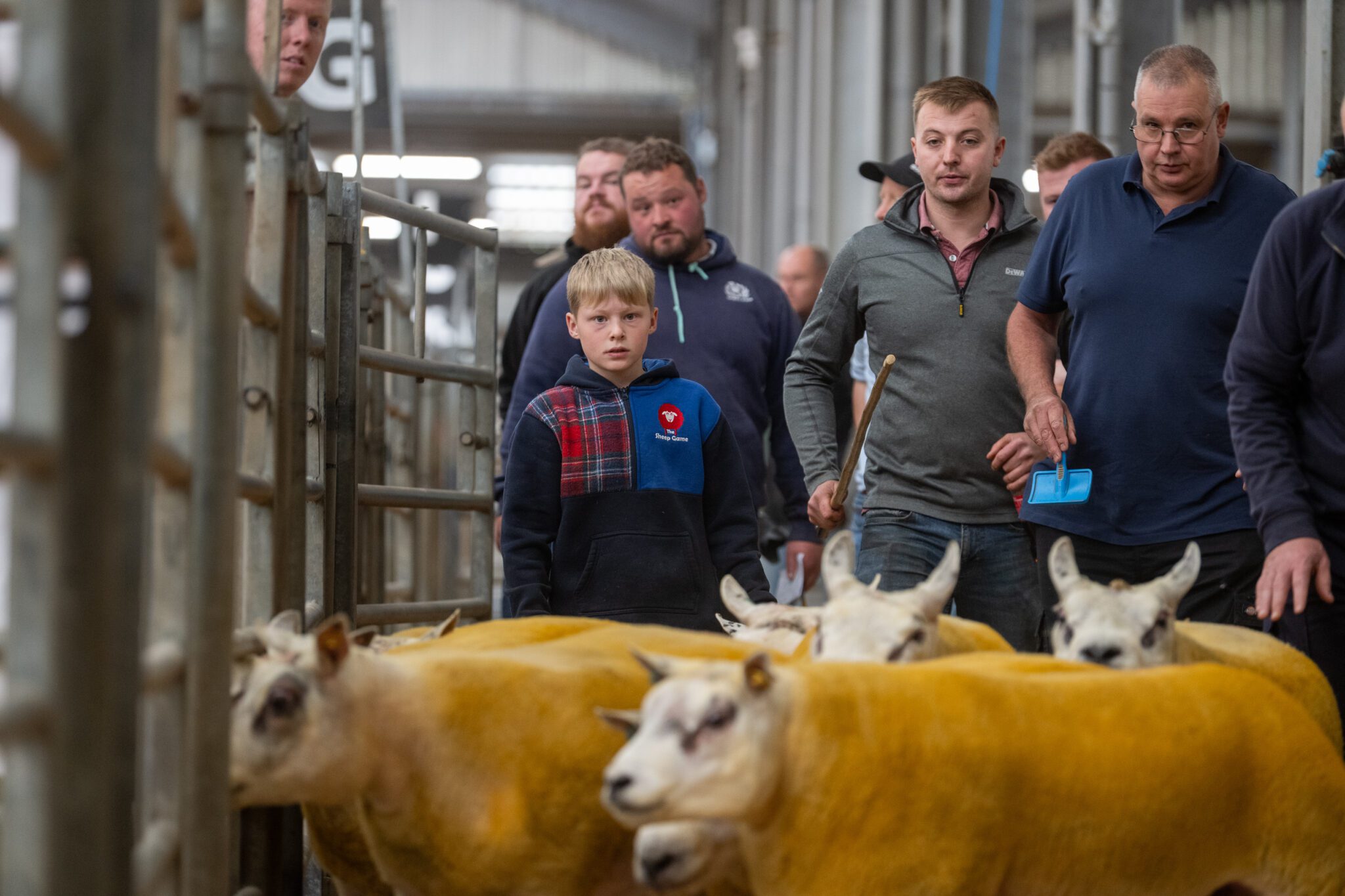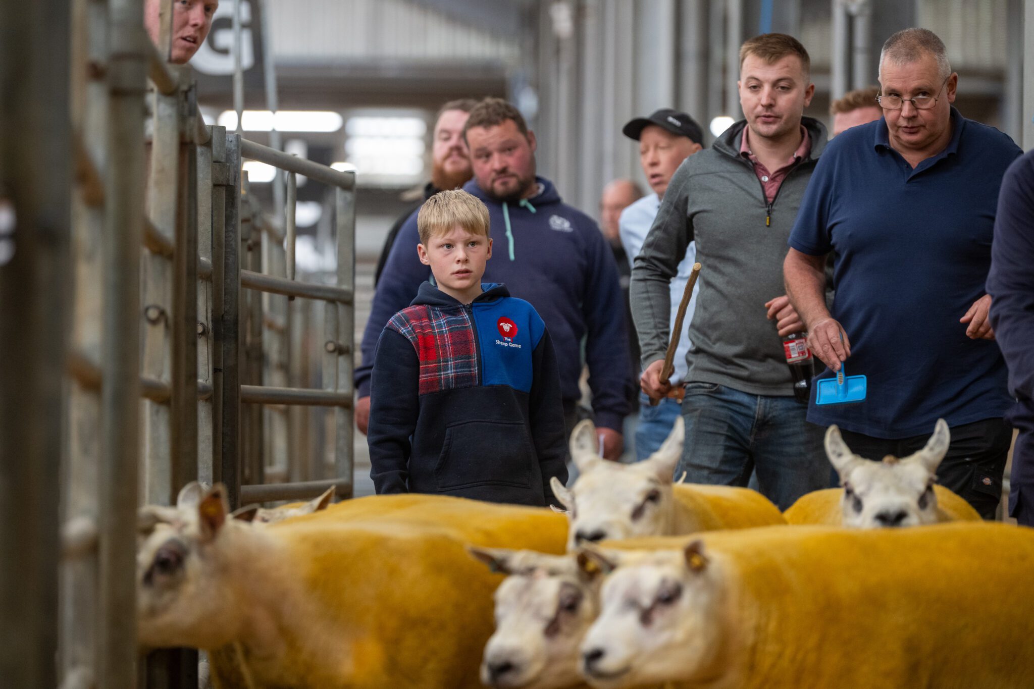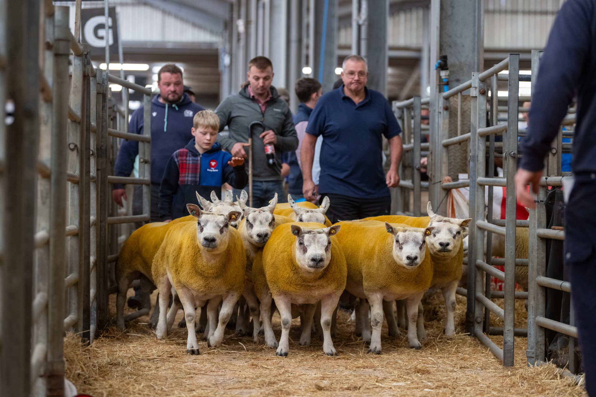 Leading the catalogue of 277, which achieved an 85% clearance, was the Millers’ early March born substitute entry Lurg Lover Boy which had been a red rosette winner at the Scottish National Show the previous month. Sired by the 10,000gns Mellor Vale King Kong and out of the Buckles Dark Dawn-sired Lurg Honour – a winning ewe lamb at the 2022 Royal Highland. Lover Boy was purchased jointly by Messrs Taylor, Heatheryhall flock, Biggar, and Messrs Wainwright, Todhall flock, Cupar.