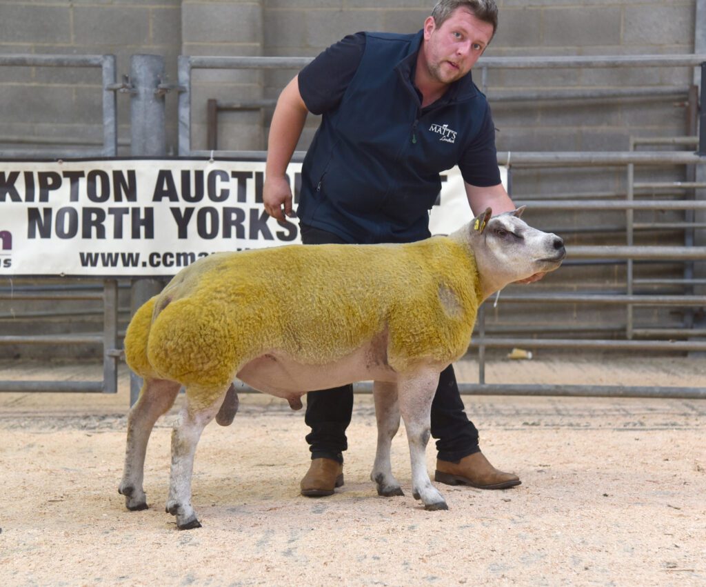 From Northern Ireland, the 2024 supreme champion and fixture regular Matthew Burleigh, Matt’s flock, Shanra, Co Fermanagh, was again to the fore when taking second top of 4000gns with his first prize shearling ram, Matt’s Kibosh, a February, 2024, single by Buckles Fizzy Pop, from a Matt’s Defender-sired ewe. The Welsh purchaser was WP Evans, Dodargan, Anglesey.