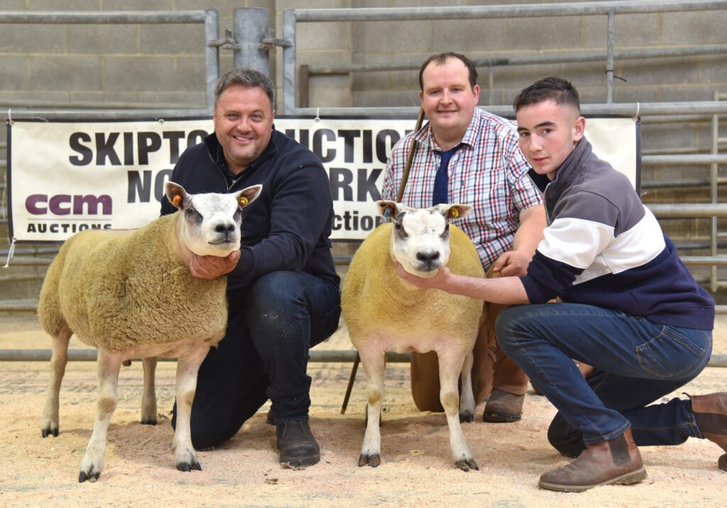 From Cheshire, Rosie Boden, Mellor Vale flock, Mellor, achieved four figures with a brace of prize winners, her third prize shearling ram making 1600gns, her fourth prize shearling ewe 1400gns. The former sold locally to David and Harry Coates, Coniston Cold, the latter to Richard Findlay, Westerdale.